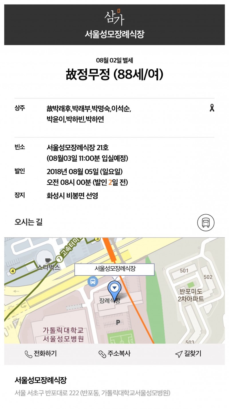 - 발인: 8월 5일(일) 아침 8시