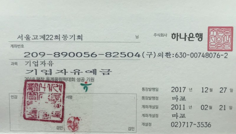 2018년도부터 동기회비납부계좌가 변경되었습니다.