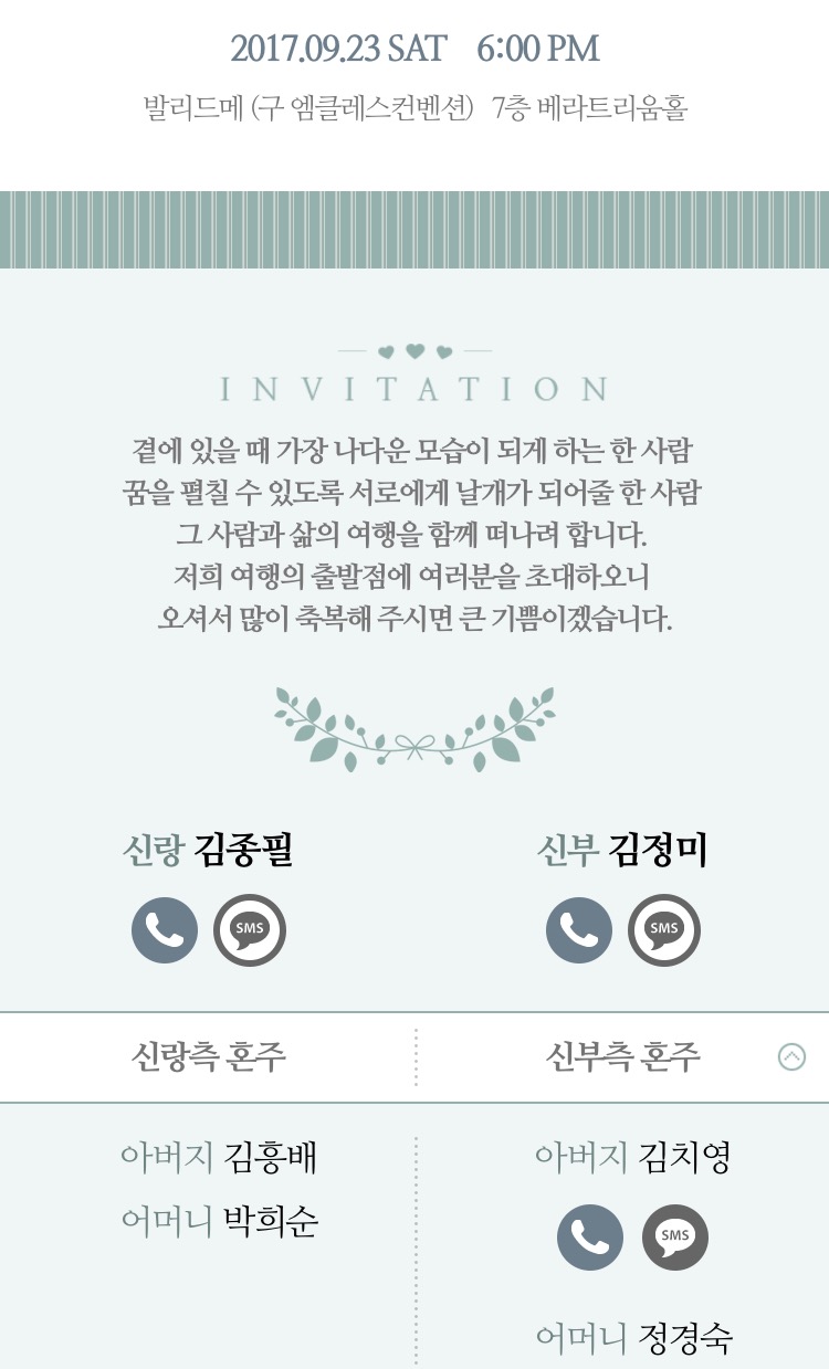 [祝혼인]김치영의 장녀 정미孃-9월23일(토) 오후6시