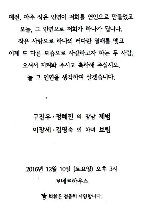 축 결혼-구진우 장남,12월10일 3시, 보네르하우스
