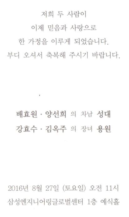 10월1일 토 11시30분, 박영수 장남결혼, KBS 신관웨딩홀