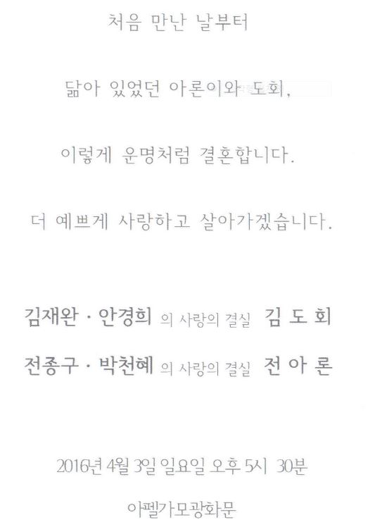 축 결혼 - 고 전종구 장녀, 4월3일(일) 5시 30분, 아펠가모 광화문점