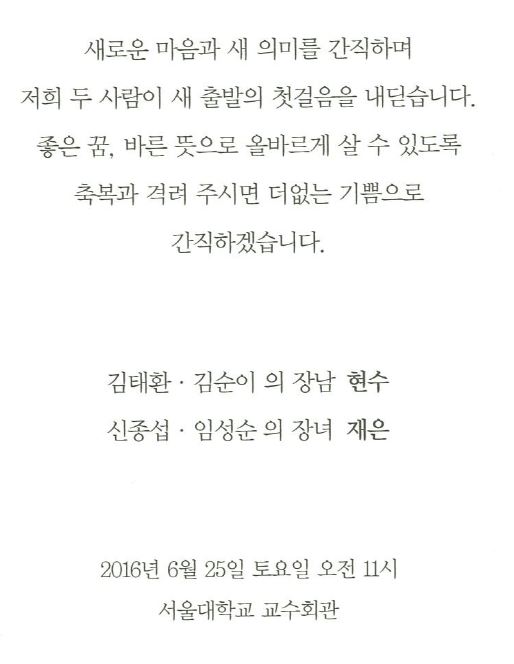 축 결혼-김인식 차녀,4월2일(토)2시,루나미엘레12층컨벤션홀(9호선국회의사당역3번출구둘째길좌회전)