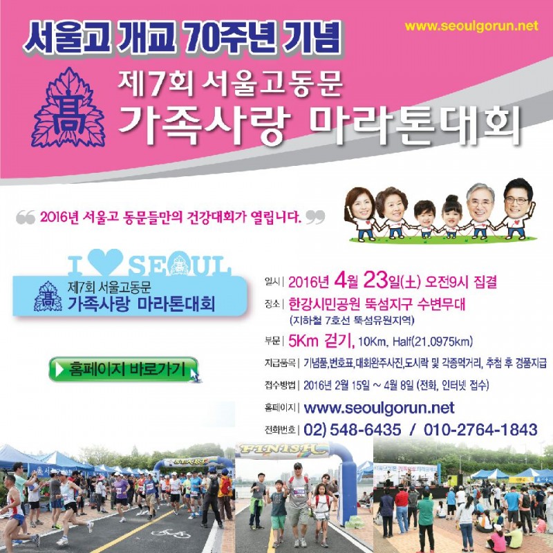 개교 70주년 기념 마라톤및 걷기 대회 안내