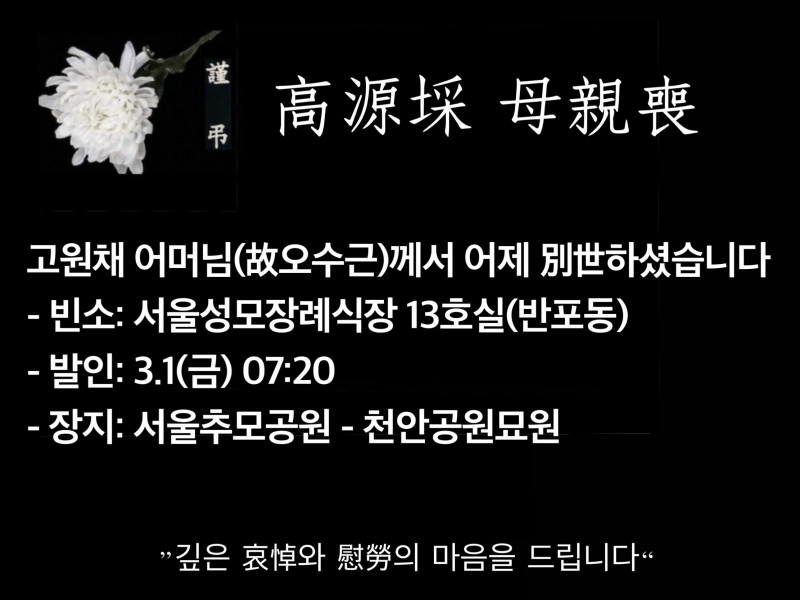 - 발인: 3.1(금) 07:20