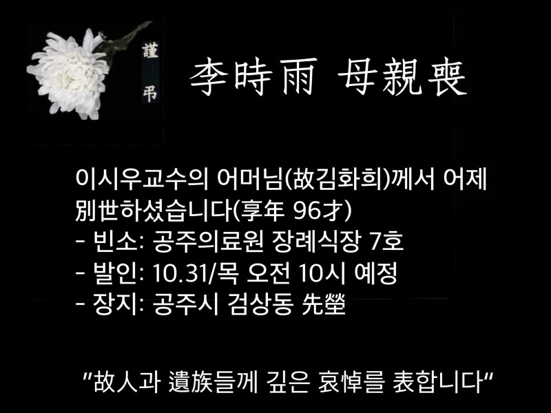 이시우교수의 어머님(故김화희)께서 어제 別世하셨습니다(享年 96才)