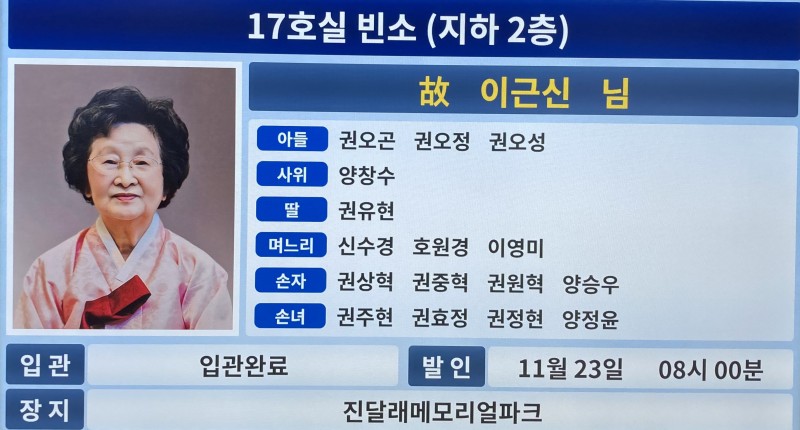 - 빈소: 삼성서울병원장례식장 5호 (22일 이후 17호)