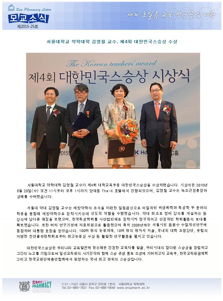 <b>祝</b> - 김영철 서울대 교수, 제4회 대한민국 스승상 수상 및 녹조근정훈장 수훈