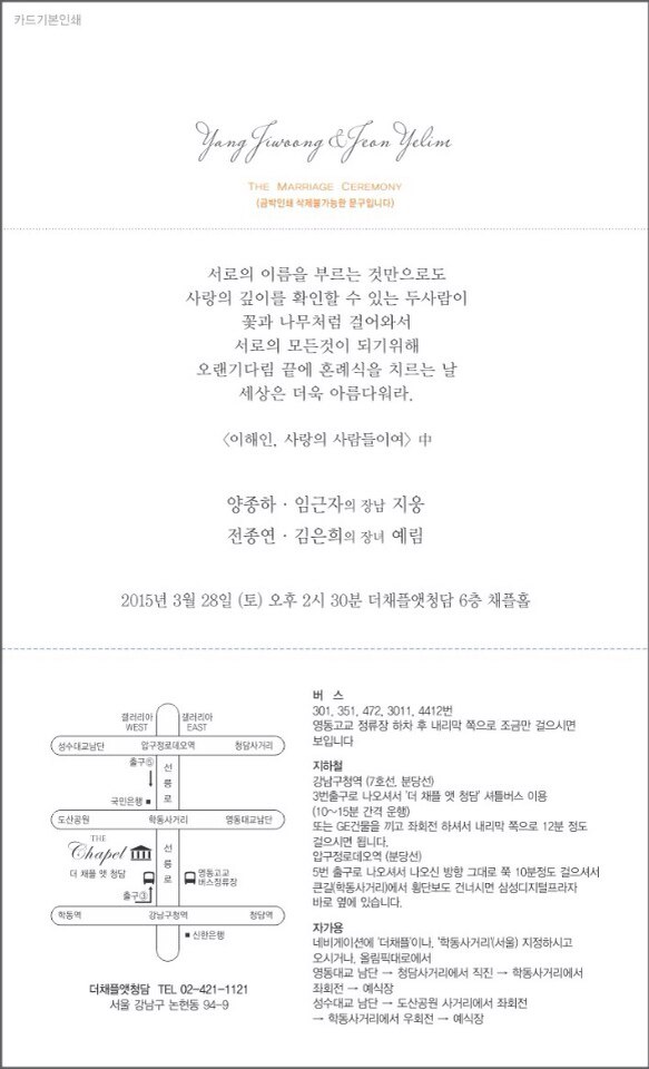 축 결혼 - 양종하 장남, 3월28일(토) 2시 30분, 더채플앳청담( 7호선 강남구청역 3번출구 셔틀버스)