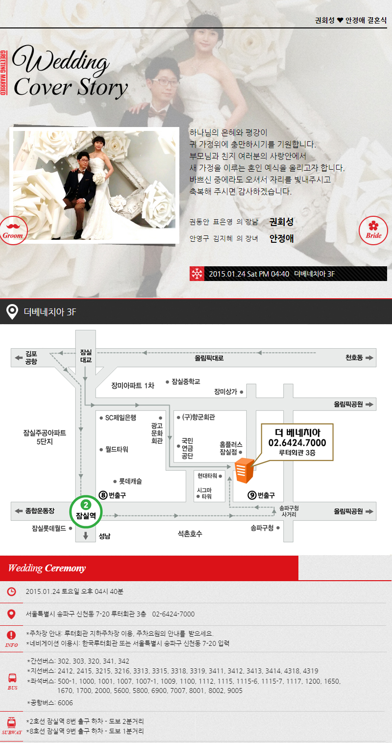 축 결혼 - 권동안 장남, 1월24일 4시40분, 더베네치아(2호선 잠실역 9번출구 옆)