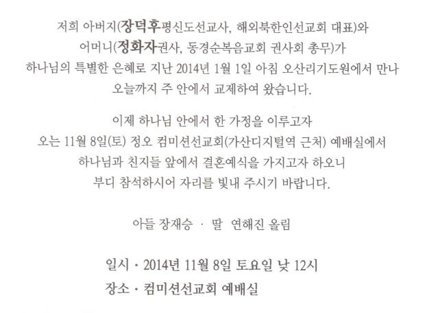 축 결혼 - 장덕후 본인, 11월8일(토)12시, 컴미션선교회(1,7호선 가산디지털단지역 부근, 02-859-2414)
