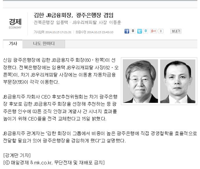축 - 임용택 JB캐피탈 사장 전북은행장에 선임