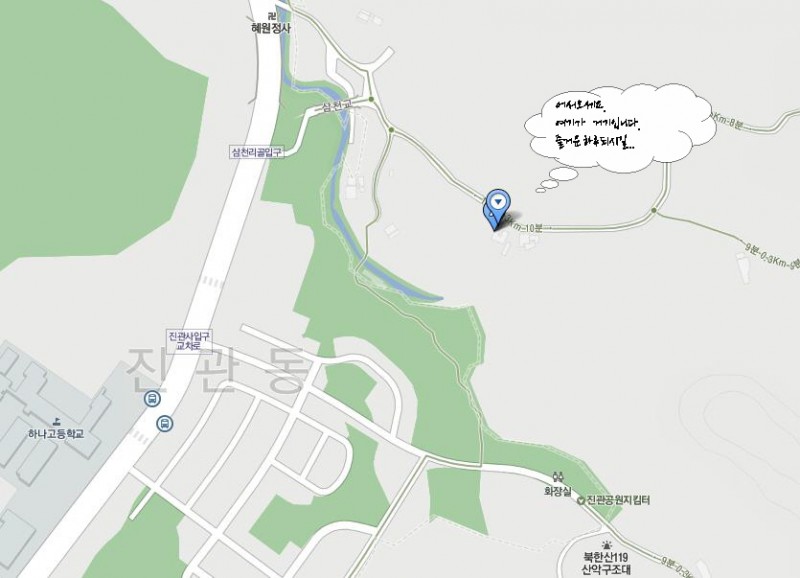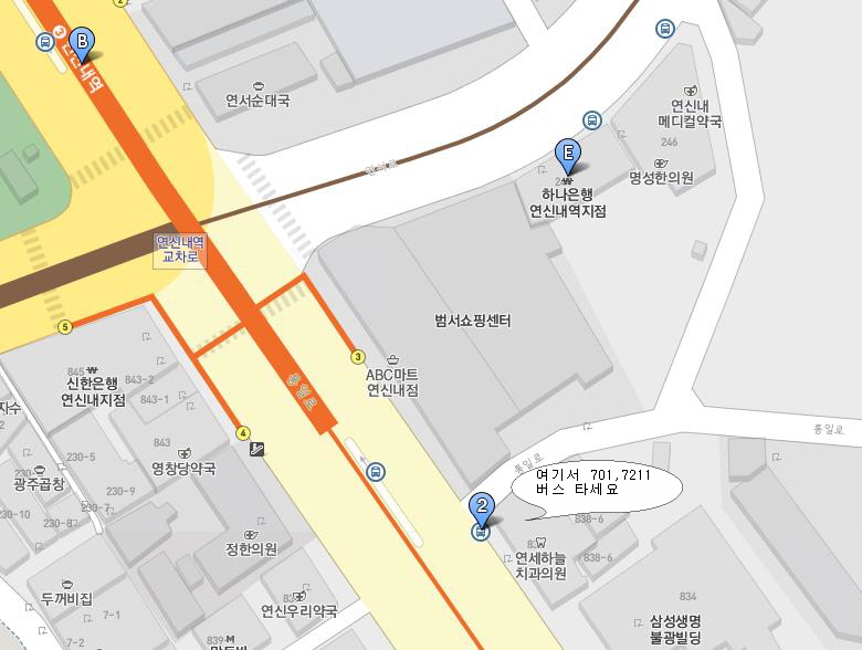 연신내역 3번출구에서 701,7211 타고 하나고등학교 앞에서 내려 도보 5분.