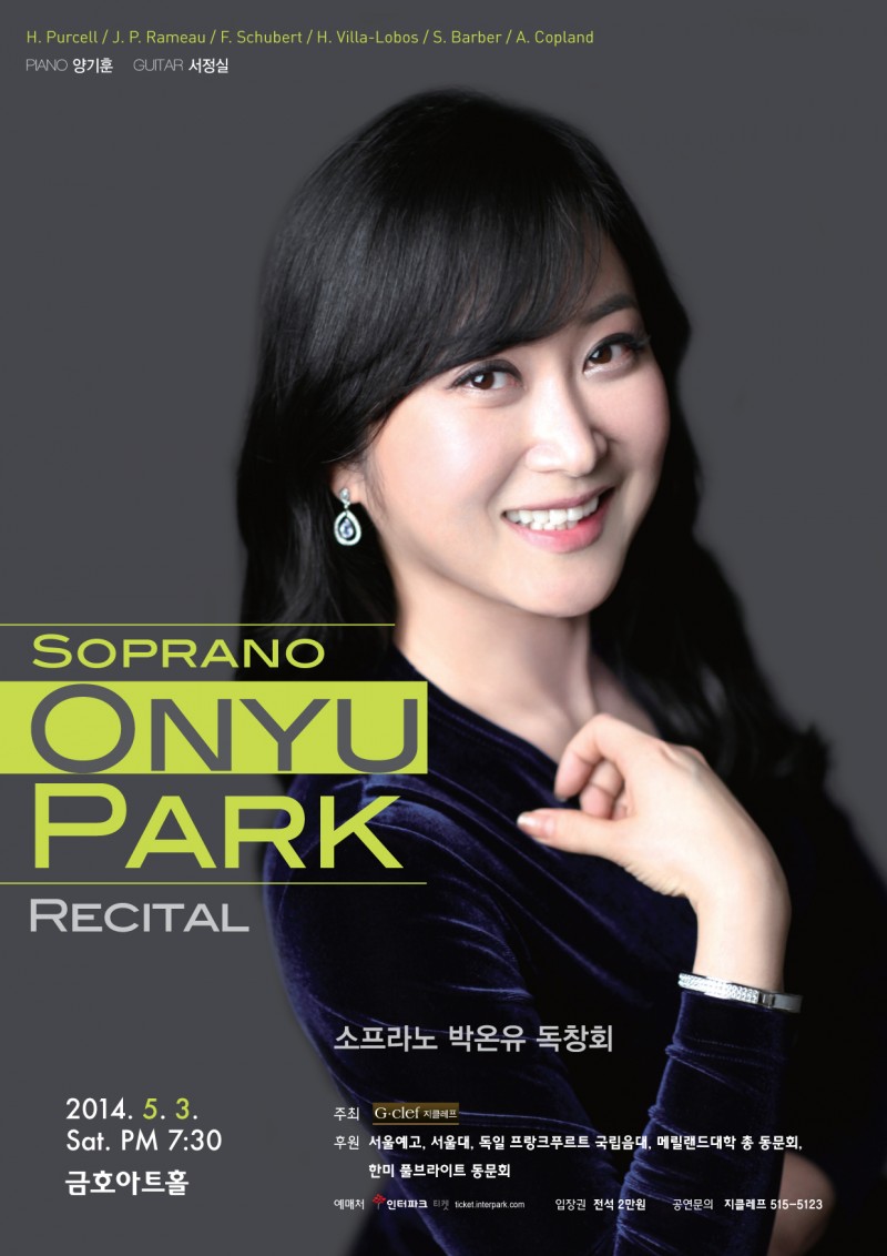 소프라노 박온유(고 박춘규 딸) 독창회 : 5월 3일 (토)저녁 7:30 금호아트홀-내용 수정