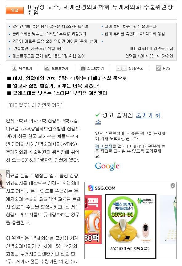 축 취임 - 이규성 교수 세계신경외과학회 두개저외과 수술위원장