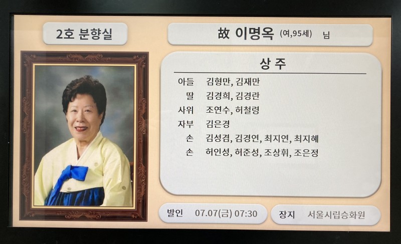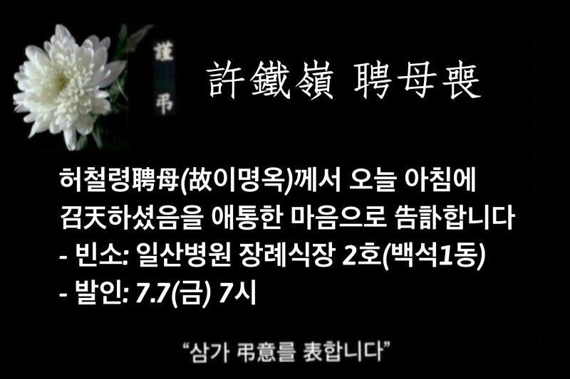 - 빈소: 일산병원 장례식장 2호(백석1동)