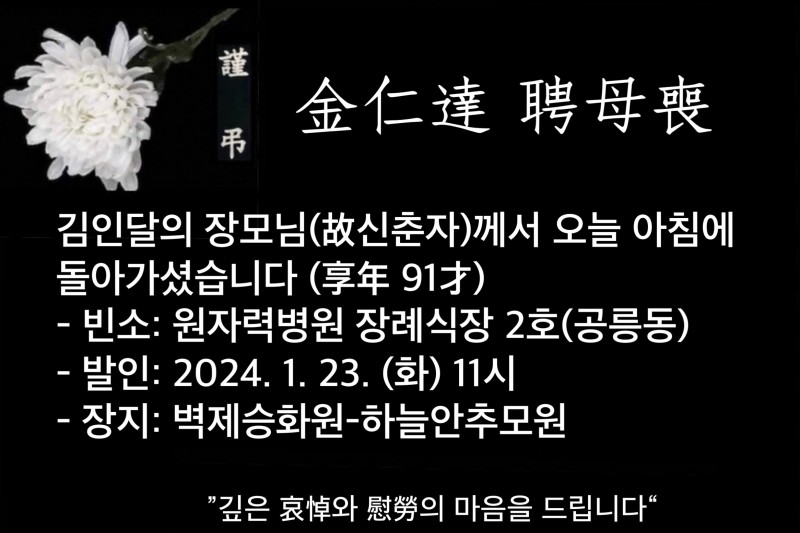 * 동기회 조문: 오늘(1.21) 오후 5시~