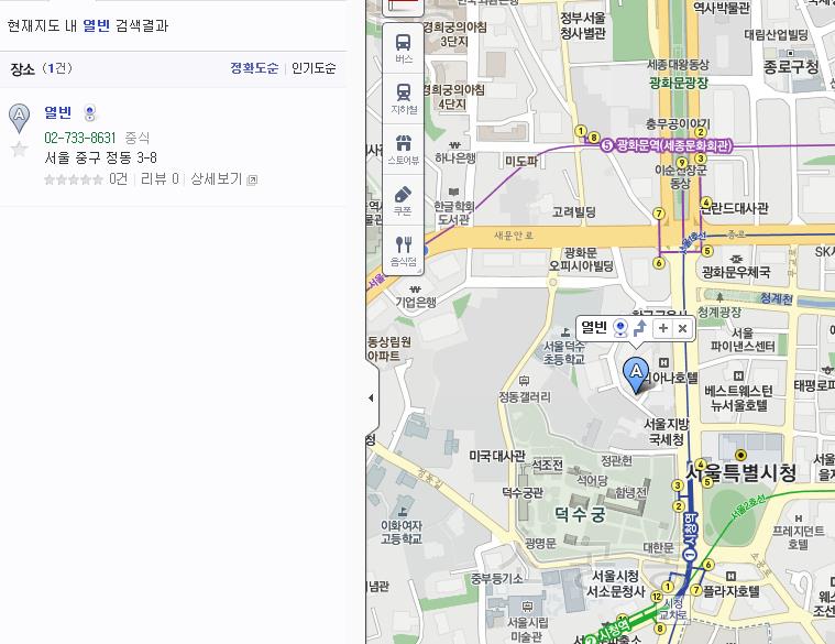 (02-733-8631, 1호선 시청역 3번출구와 5호선 광화문역 6번출구 사이 골목)