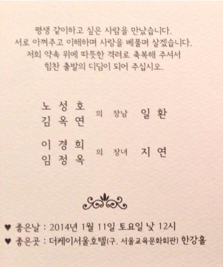 축 결혼 - 노성호 장남, 1월11일(토) 12시, 더케이 서울호텔(구 서울교육문화회관) 02-571-8100