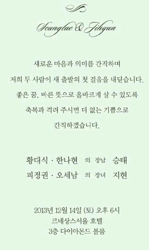 결혼 알림 - 황대식 장남, 12월14일(토)6시, 르네상스 서울호텔
