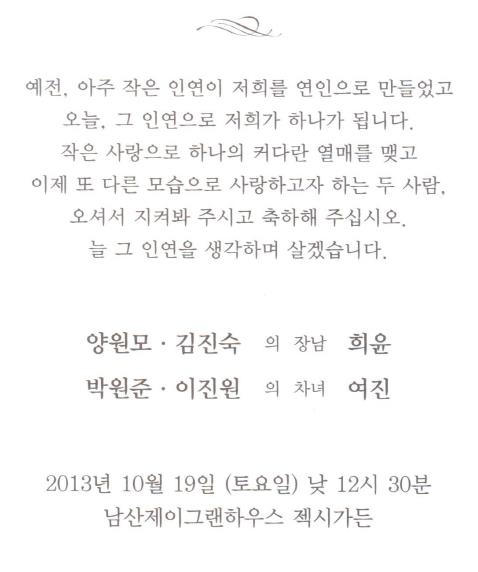 결혼 알림-박원준 차녀,10월19일(토)12시30분,남산제이그랜하우스 젝시가든(한국자유연맹 예식부)