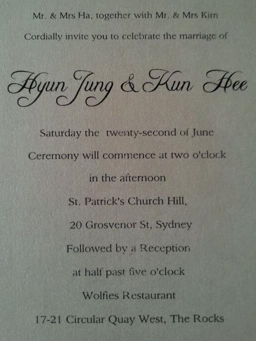 결혼 알림 - 하윤도 장녀, 6월22일(토) 2시, 성패트릭 교회(호주,시드니)