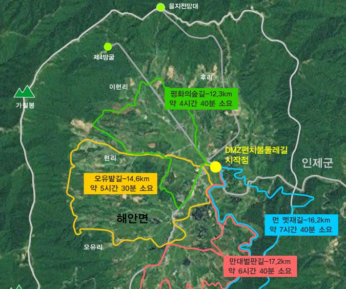 - 산행코스; 평화의 숲길 (14km) 혹은 그중 일부, 을지전망대, 제4땅굴