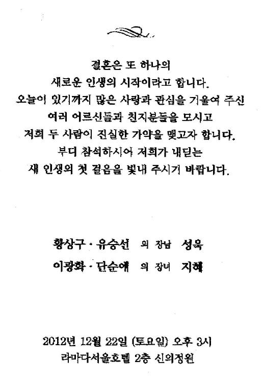 결혼 알림 - 이광화 장녀, 12월22일(토)3시, 라마다서울호텔(분당선 선정릉역1번출구 도보1분)02-6202-2000