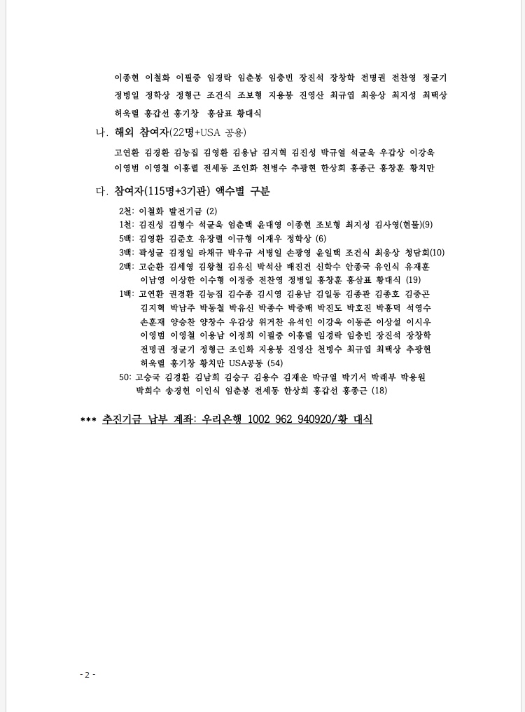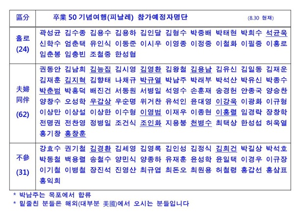 <卒業50기념 추진기금운용 및 피날레 여행>