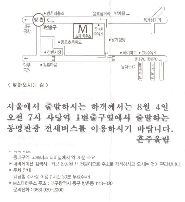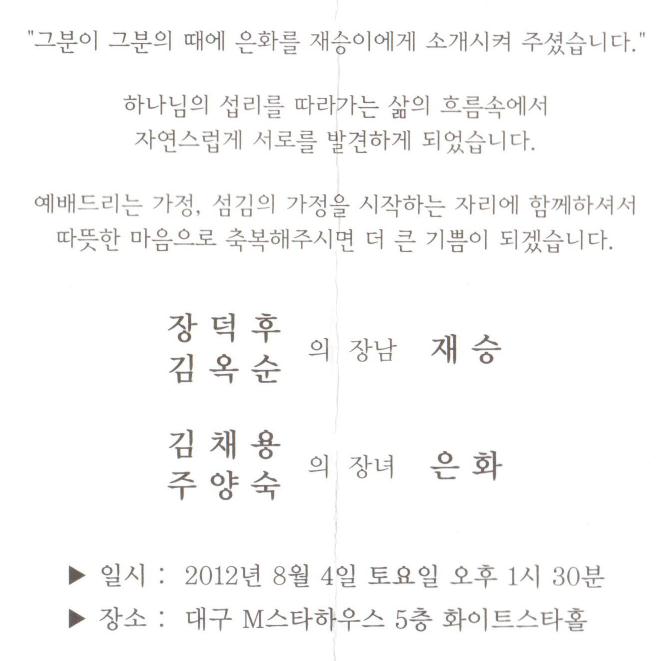 결혼알림 - 장덕후 장남, 8월4일(토)1시30분, 대구 M스타하우스 5층(9시 사당역1번출구 버스대기)
