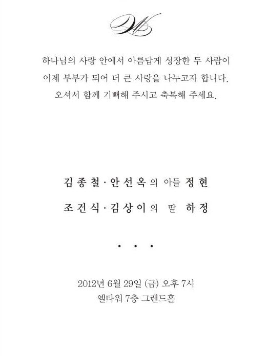 결혼 알림 - 조건식 장녀, 6월29일(금)7시, 엘타워7층 그랜드홀(양재역9번출구 부근)