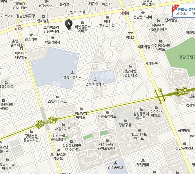 강남구청역 4번출구 도보 10분, 안세병원 맞은편. 약도 참조