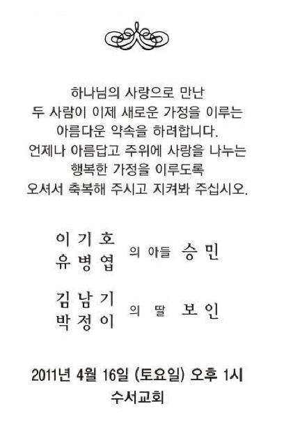 청첩 - 윤진영 장남 결혼, 3월26일(토) 6시30분, 엘타워7층(양재역7번출구 직진)