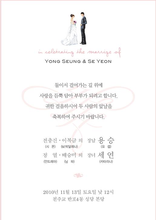 청첩 - 정열 장녀 결혼, 11월 13일(토) 12시, 천주교 반포4동 성당 본당(약도참조)