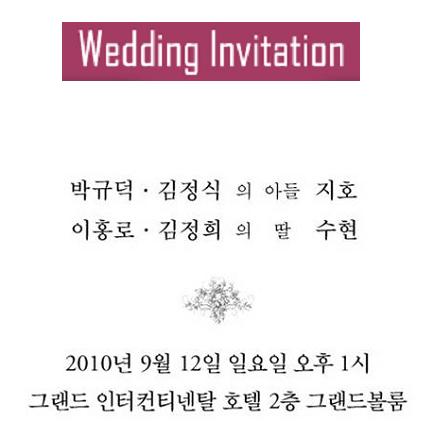 청첩 - 지성훈 차녀 결혼, 9월4일(토)낮12시, 라프로메사웨딩홀 3층그랜드볼룸(안양종합운동장부근)
