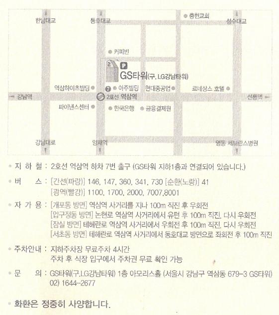 강남지회 9월 모임 안내 - 9월14일(화) 7시, 목화(삼성역5번출구 631m)