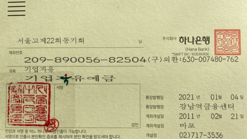 (예금주:서울고제22회동기회)