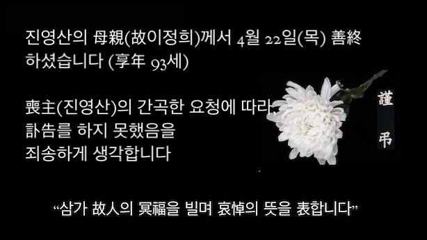 진영산母親喪을 뒤늦게나마 알려드립니다