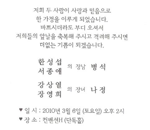 청첩 - 박남주 장남 결혼. 2월20일(토)1시, 조달청빌딩 별관3층(강남성모병원 앞)