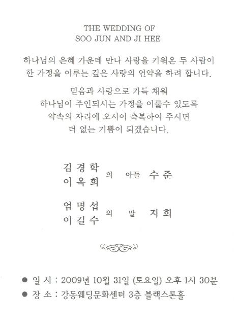 청첩 - 김경학 차남 결혼, 10월31일(토)1시30분, 강동웨딩문화쎈터 블랙스톤홀