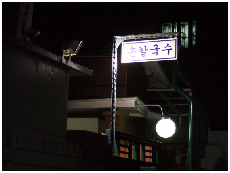 옛 정취가 묻어나는 혜화동 골목길, 조그만 형광등 간판 ‘손칼국수’가 정겹다.