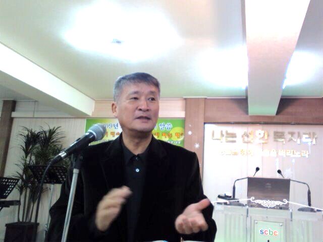 [사진1]서울우리교회에서 모인 1월모임에서 간증하는 배진건 장로