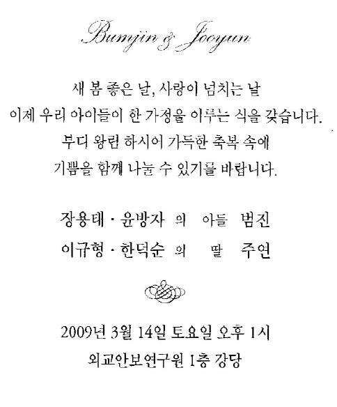 청첩- 이규형 대사 장녀 결혼, 3월14일(토)1시, 외교안보연구원 1층 강당