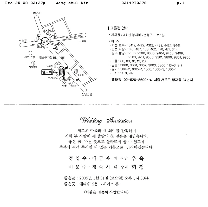 청첩-이문수 장녀결혼, 1월31일(토)5시30분, 엘타워6층 그레이스홀(양재역7번출구)