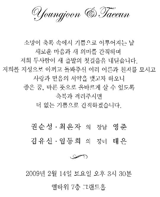 청첩-김유신 장녀결혼, 2월14일(토) 3시 30분, 엘타워7층 그랜드 홀