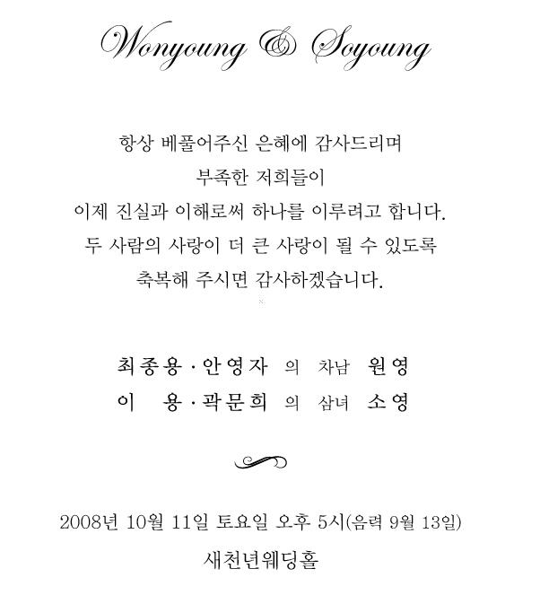 청첩 - 최종용 차남 결혼, 10월11일(토) 5시, 새천년웨딩홀(청담역12,13번 출구)