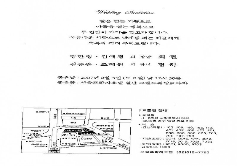 윤일택 동기 장남 결혼 청첩- 2007년 1월 13일(토) 12시, 신라호텔 다이너스티 홀