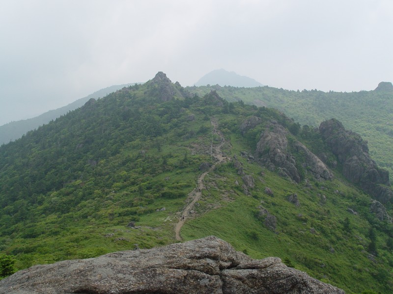 2. 22지리산대종주시 연화봉 가는길;멀리 천왕봉이 보이고...(2003. 6. 7 오전)