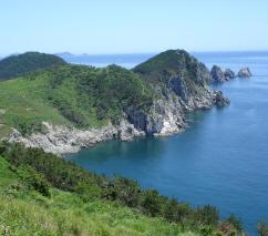 오랜 파도와 해풍에 깎여 이뤄진 바위산 기암절벽과 절벽 끝에 위태롭게 걸린 소나무, 육지를 향해 징검다리처럼 놓여져 있는 자잘한 섬들, 수천년의 파도소리, 그것은 욕지도만이 그려낼 수 있는 살아 꿈틀거리는 풍경이다.
