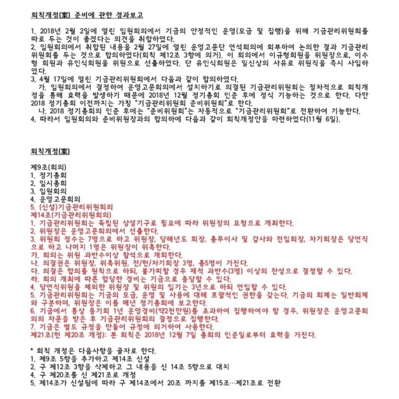 정기총회식순/재무보고서 및 회칙개정(안)입니다.